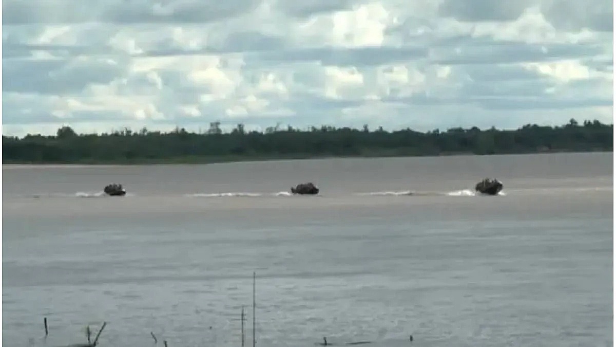 El miltar explicó que la búsqueda se concentra en la costa y en las islas cercanas, al tiempo que Prefectura comenzó a trabajar sobre el lugar donde chocó el bote y desde donde se dispersó el material flotante río abajo.