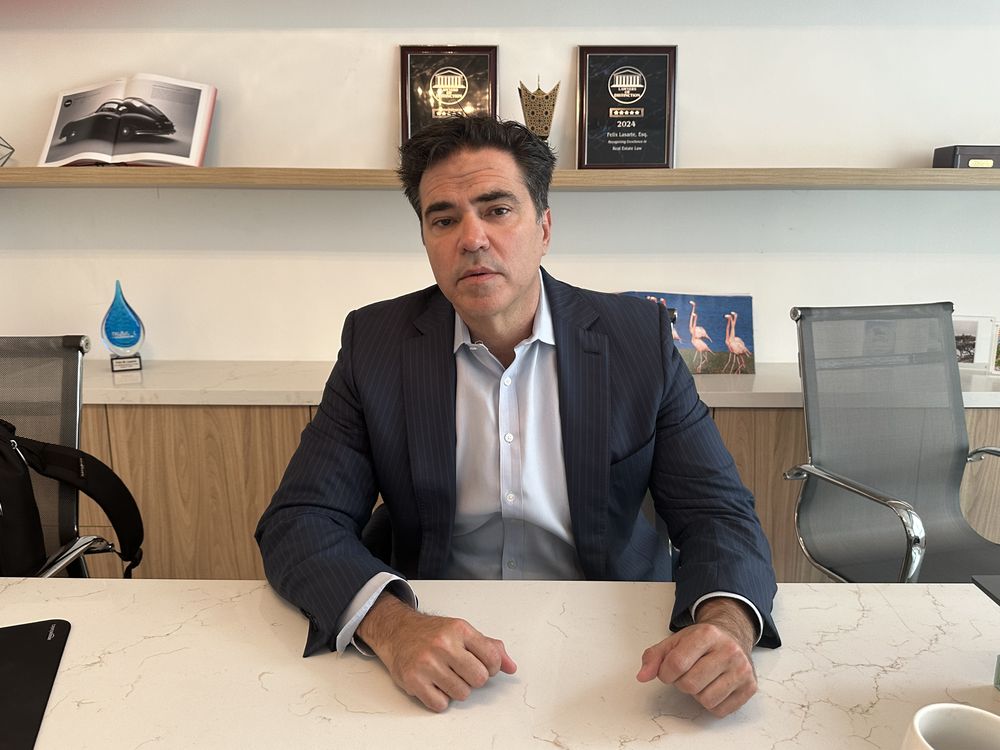 El abogado Félix Lasarte en su estudio, donde recibió a El Observador USA, opinó sobre Trump y Milei.