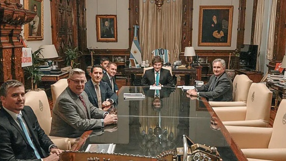 Junto a Milei en Casa Rosada estuvo el canciller, Pablo Quirno, y por parte de las empresas participaron Jack Lundin, CEO de Lundin Mining; Carlos Ramírez, vicepresidente en BHP de la Joint Venture Vicuña y presidente del Directorio; Ron Hochstein, CEO de Vicuña Corp.; y José Morea, director para Argentina y Chile de Vicuña Corp.