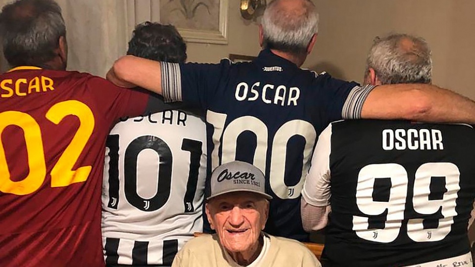 El jugador de la Roma mantiene una amistad con Don Oscar D'Olivo y cada año, desde que cumplió 98, le envía ese regalo con el número de su edad en la espalda. El festejo reunió a familiares, vecinos y amigos en Colonia Caroya