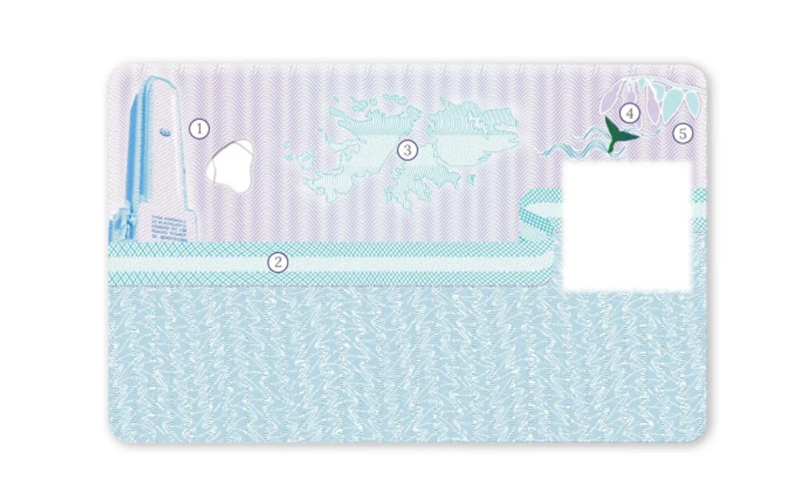 El fondo de la página tiene guilloches perdidos y espejados, impresos a DOS (2) colores, una representación estilizada del globo terráqueo con tramas que diferencian la silueta de la República Argentina, el símbolo internacional de documentos de viaje, una imagen MIRAGE y una ventana transparente.