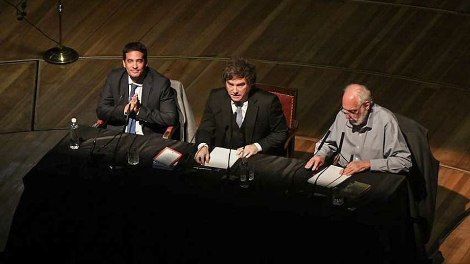 La exposición, que se extendió por casi una hora y fue moderada por el diputado Adrián Ravier, tuvo como título "Keynes y la Teoría General", se desarrolló en el Palacio Libertad (ex-CCK) y estuvo centrada en la crítica al modelo económico keynesiano.