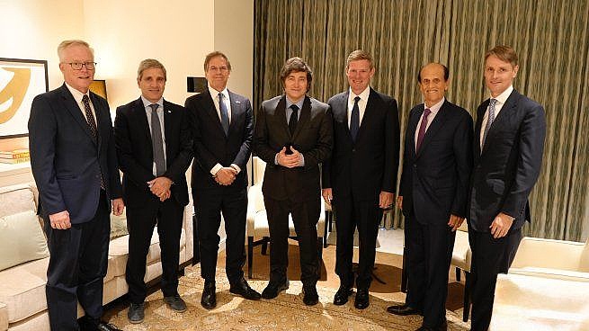 El Presidente mantuvo encuentros con empresarios en Los Ángeles. En su entorno no descartan que el domingo esté presente en La Plata.