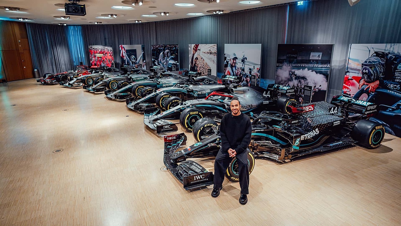Haciendo un balance de su carrera récord bajo la bandera de Mercedes-Benz, Lewis Hamilton ha sido el piloto de Fórmula 1 más exitoso del mundo de todos los tiempos. Ganó siete títulos del Campeonato del Mundo con un auto con motor Mercedes-Benz (el primero en 2008 con el McLaren-Mercedes MP4-23) y seis más con las Flechas de Plata. Este año finalizó la relación entre Hamilton y el equipo y el Museo Mercedes-Benz celebra al legendario campeón con una presentación muy especial que está activa hasta enero de 2025. Allí seis de sus monoplazas ganadores de título están exhibidos en el Gran Salón en la planta baja del edificio. Por otra parte, su auto del Campeonato Mundial 2020 forma parte de la exposición permanente del Museo en la sección "Legends Room 7: Silver Arrows. Races and Records" (Salón Leyendas 7: Flechas de Plata. Carreras y Récords).