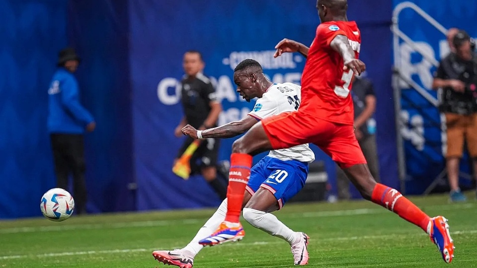 A pesar de jugar con diez hombres, Estados Unidos se puso en ventaja a los 21 minutos con un tremendo remate cruzado de Balogun que pegó en el palo izquierdo y entró.