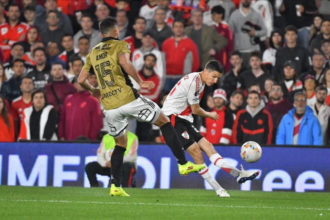 Con una pelota a los 16 minutos de la primera etapa y el despeja corto de la defensa de Colo Colo, Santiago Simón volvió a meter la pelota en el área y de un solo toque en el aire, Facundo Colidio puso el 1 a 0 para River.
