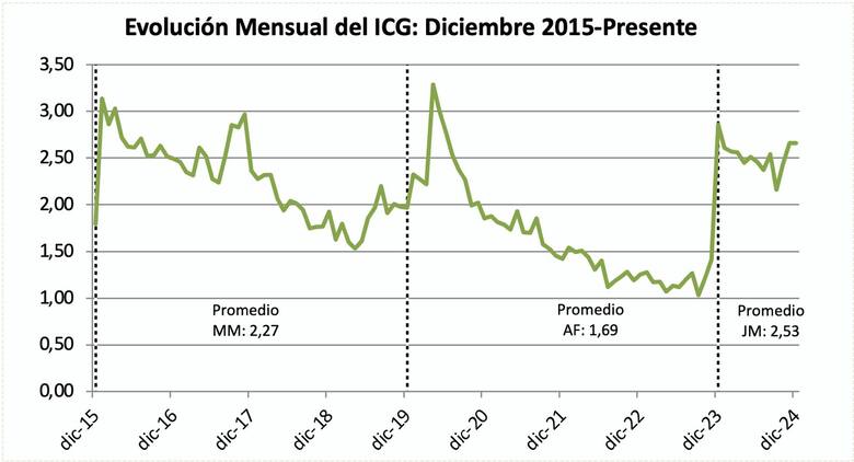 El Gobierno debe despejar este panorama de acertijos y cuestiones con los astros alineados. Muchas variables de la vida pública juegan a favor del oficialismo, que ha tenido un éxito económico importante en aquello que se había propuesto como el centro de su actividad, que es la baja de la inflación. Esto explica que hoy, que se volvió a conocer el Índice de Confianza del Gobierno (IGC) para el mes de diciembre, la cifra se encuentre en el mismo orden del mes pasado: 2,66%. Más allá del bajón que hubo en agosto, este número se mantiene estable, con un promedio para este primer año de 2,53%. Es injusto compararlo con un gobierno de dos mandatos completos, pero el promedio de Alberto Fernández fue de 1,69% y el de Mauricio Macri rondó los 2,27%. Significa que Milei encabeza la lista y se encuentra en una situación mejor a la que se encontraban Fernández y Macri para la misma época.