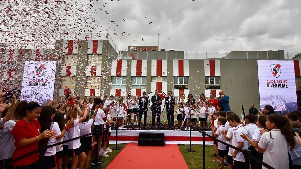 El acto de inauguración del nuevo edificio del Colegio River, con la presencia del presidente del club, Jorge Brito y el secretario general, Stefano Di Carlo.El acto de inauguración del nuevo edificio del Colegio River, con la presencia del presidente del club, Jorge Brito y el secretario general, Stefano Di Carlo.