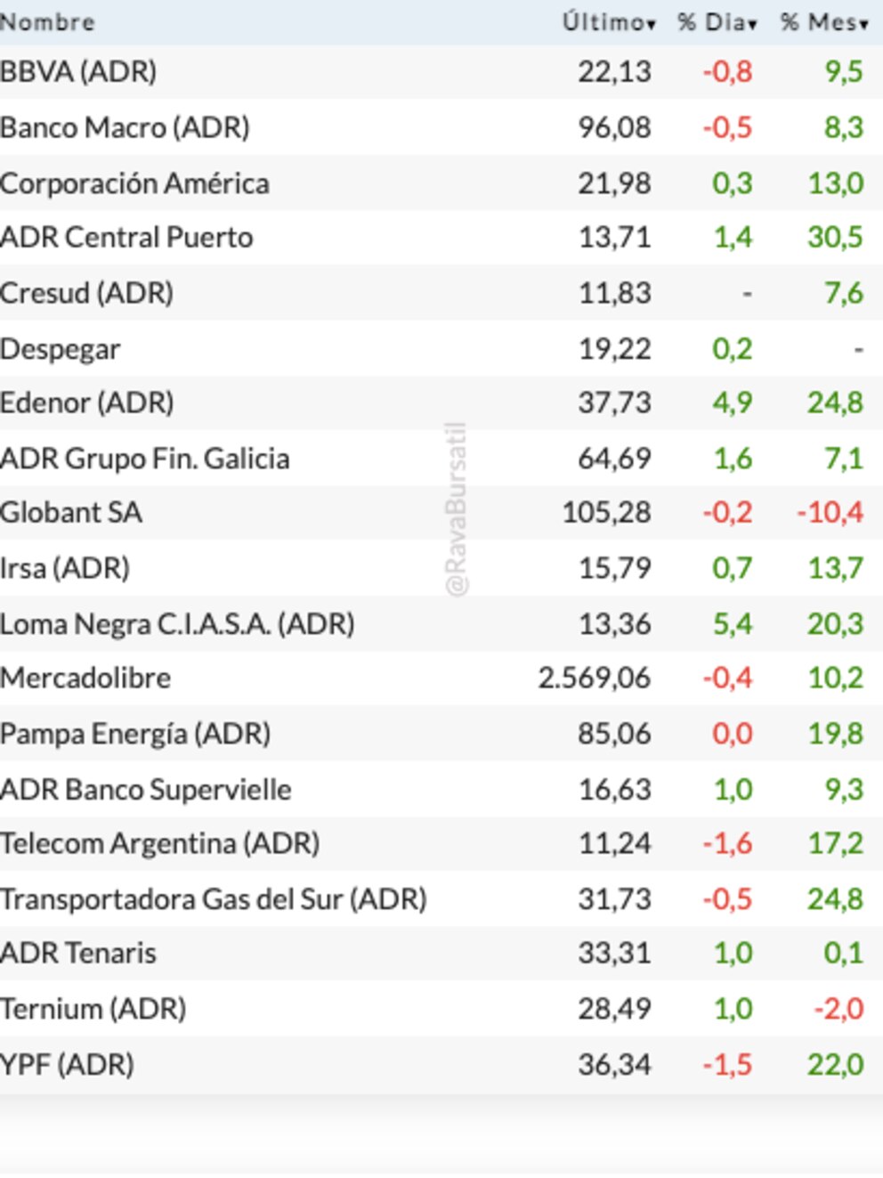 Entre los ADR y acciones de compañías argentinas negociadas en dólares en Nueva York negocian con mayoría de subas. Destacan Loma Negra (+5,4%) y Edenor (+4,9%).