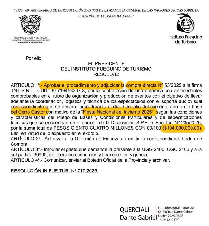 En un contexto de serias denuncias judiciales y dudas sobre la transparencia en las altas esferas, surge otra polémica que indigna a los fueguinos: el gobierno fueguino gastó la friolera de 104 millones de pesos para la Fiesta Nacional del Invierno. Lo que genera más controversia es que esta suma monumental se destinó a pagarle a un privado y se realizó mediante compra directa, sin licitación pública. Todo esto, para un evento que, paradójicamente, dura apenas una noche.