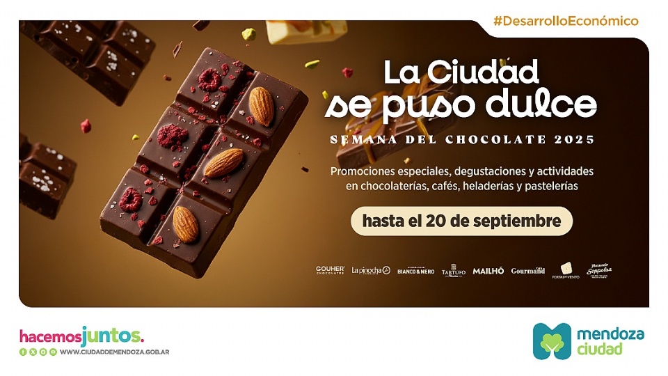 Hasta el sábado 20 de septiembre, chocolaterías, cafés, heladerías y pastelerías ofrecerán promociones especiales, degustaciones y actividades lúdicas, para que mendocinos y visitantes disfruten de lo mejor del chocolate en la Ciudad.