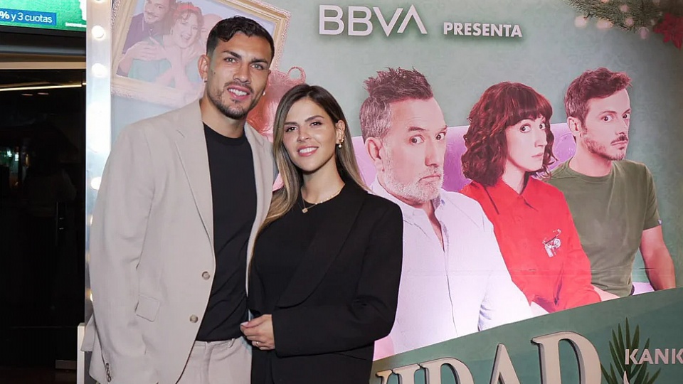 El campeón del mundo Leandro Paredes y su esposa, la empresaria e influencer Camila Galante, asistieron a la función inaugural para la prensa de la obra "Una navidad de mierda", en el Teatro Premier, donde además fue acompañado por su amigo, también futbolista, Ander Herrera.