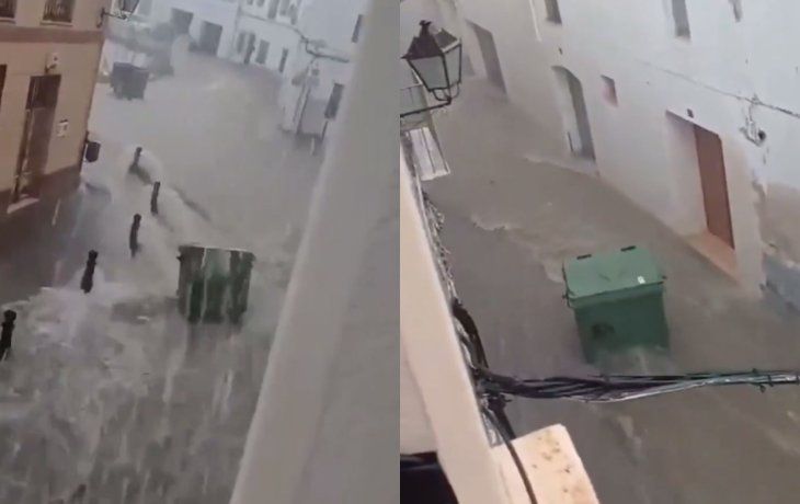 Oliva, una localidad de 26.000 habitantes en Valencia, quedó incomunicada por varias horas debido las lluvias que arrastraron hasta los contenedores de basura.