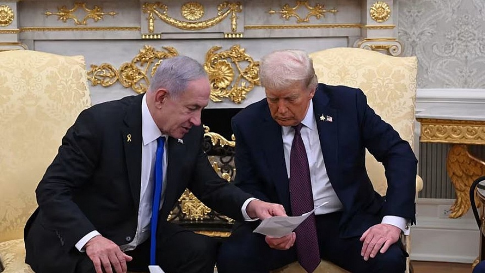 Trump recibió personalmente a Netanyahu en la entrada de la Casa Blanca, para esta cuarta visita que lleva a cabo el mandatario israelí a Washington en lo que va de año. En medio de la reunión, la Casa Blanca publicó su plan para Gaza.