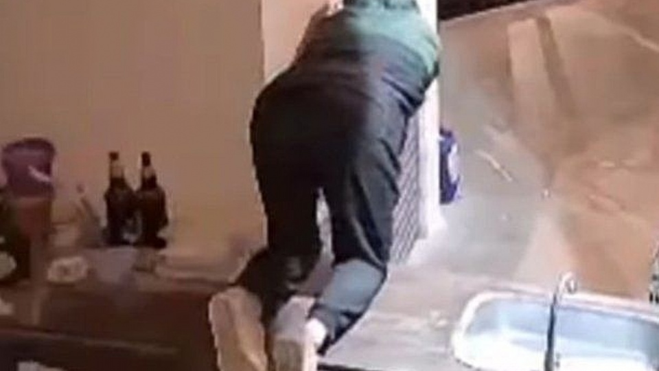 La secuencia fue captada por una cámara de seguridad instalada en el jardín de una vivienda de la localidad. En las imágenes se observa a un grupo de amigos reunidos alrededor de la parrilla, cuando un hombre trepa con habilidad sobre una mesada perpendicular al asador. Sin ser advertido, estira la mano y se lleva un pedazo de vacío que estaba en plena cocción.