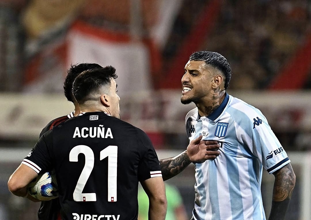 El defensor de River se mostró enfurecido tras el pitazo final, y luego se observó el momento en que había sido agredido por el delantero de Racing.
