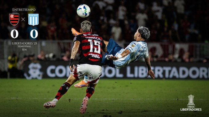 Racing perdió por 1 a 0 con Flamengo de Brasil al término del partido que disputaron esta noche, en el estadio Maracaná, por el partido de ida de la semifinal de la Copa Libertadores 2025.