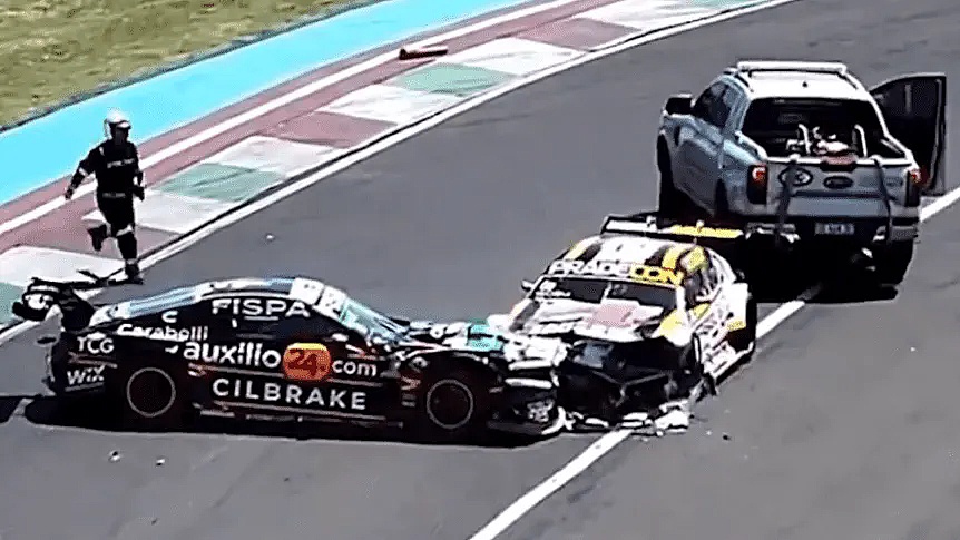 Los referentes de Ford tuvieron una fuerte disputa en el inició de la tercera batería de la fecha 13 del Turismo Carretera, que quedó en manos del local y reavivó el campeonato.