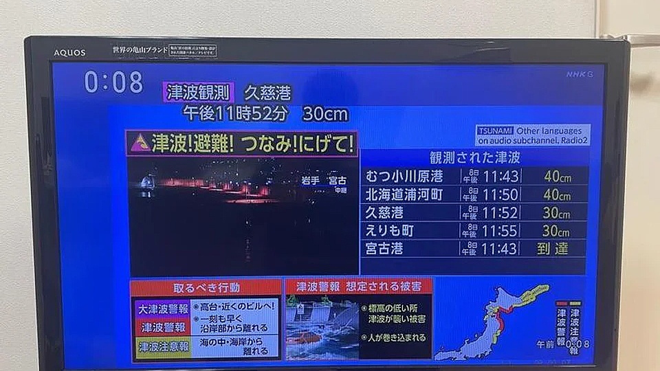 Se esperaban olas de hasta tres metros tras un terremoto que afectó a los servicios del tren bala, pero el tsunami más alto observado fue de unos 70 centímetros.