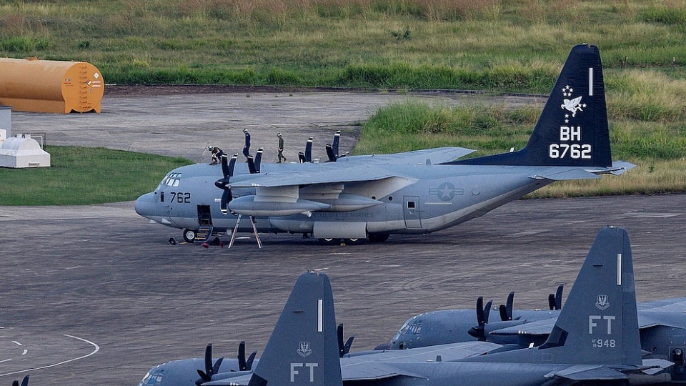 Dos aviones F-35B del Cuerpo de Marines de EE. UU. sobrevuelan el antiguo aeropuerto de la Estación Naval Roosevelt Roads en Ceiba, Puerto Rico.