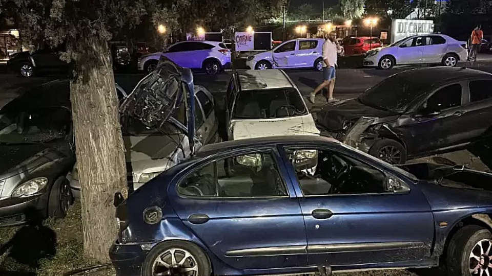 Tras ese primer choque, el automóvil continuó su trayectoria descontrolada y terminó colisionando contra varios vehículos que se encontraban estacionados sobre el costado este de la traza. Entre los rodados afectados se encontraban un Cronos, un Fiat Fire, un Palio y un Chrysler Cruiser.