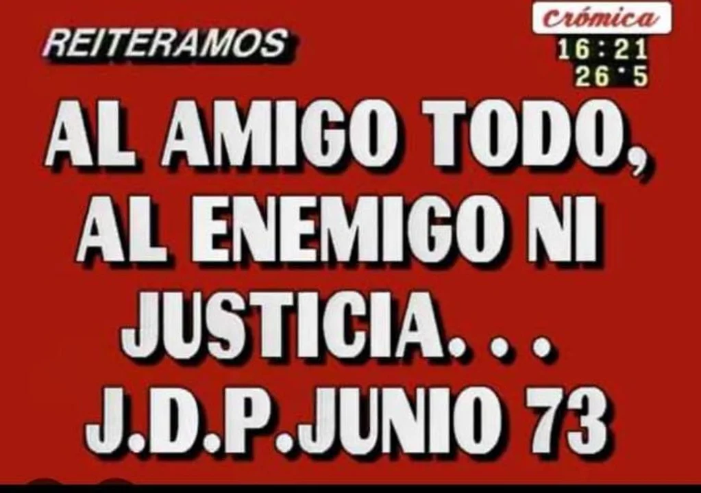 Desde el celular que es propiedad de Vallejo se subieron dos fotos, la primera con una frase del fallecido presidente Juan Domingo Perón: "Al amigo todo, al enemigo ni justicia... J.D.P. Junio 73".
