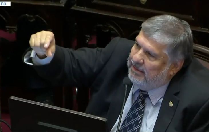 El jefe de la bancada de UP aludió a la frase nazi "El trabajo libera". La libertaria quiso interrumpirlo y José Mayans la cruzó: "Acá no está la policía".