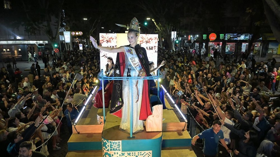 Este viernes la Vía Blanca de las Reinas recorrió las principales arterias del centro mendocino, marcando el inicio del fin de semana más importante para la provincia.
