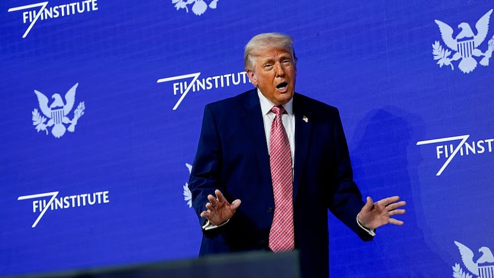 El presidente de Estados Unidos, Donald Trump, pronuncia un discurso en la cumbre del Instituto de la Iniciativa de Inversión Futura (FII, por sus siglas en inglés) en el Foro Faena en Miami Beach, Florida, EE. UU., el 27 de marzo de 2026. REUTERS/Elizabeth Frantz