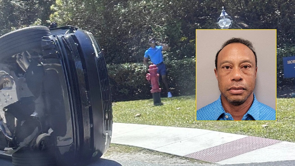 Tiger Woods chocó su Land Rover contra un camión, lo que provocó el vuelco del vehículo y su detención por la policía, según videos publicados por The Sun.