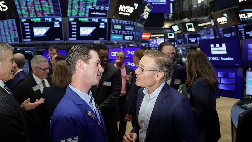 Operadores trabajan en la sala de la Bolsa de Nueva York (NYSE) en la ciudad de Nueva York, EE. UU., 16 de abril de 2026. REUTERS/Jeenah Moon