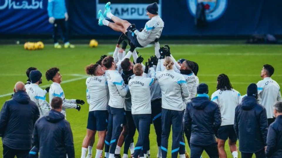 En las canchas de práctica, los jugadores del City alzaron al delantero cordobés, lo lanzan para arriba varias veces y luego le hicieron la tradicional “manteada” por coronarse campeón del Mundo. Entre quienes más lo celebraron estuvieron el noruego Erling Haaland, al inglés Kylie Walker y al turco Ilkay Gundogan.