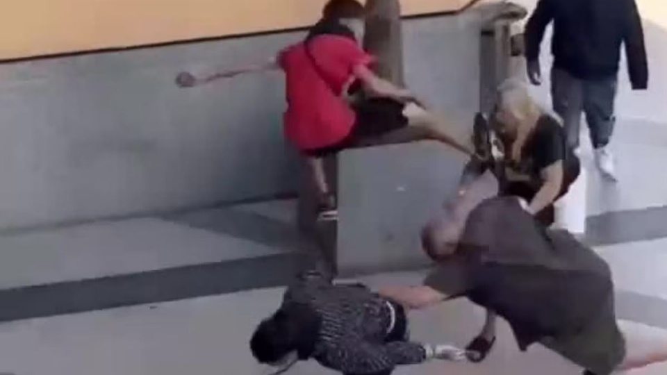 Uno de ellos sorprende al hombre por la espalda y lo tira al suelo con rapidez mientras que su compañero decide pegarle una feroz patada a la mujer en el pecho. “¡No, hijo de puta! (sic)”, grita la mujer al ver que ambos individuos no solo intentaban sustraerles sus pertenencias sino habían golpeado a su acompañante.
