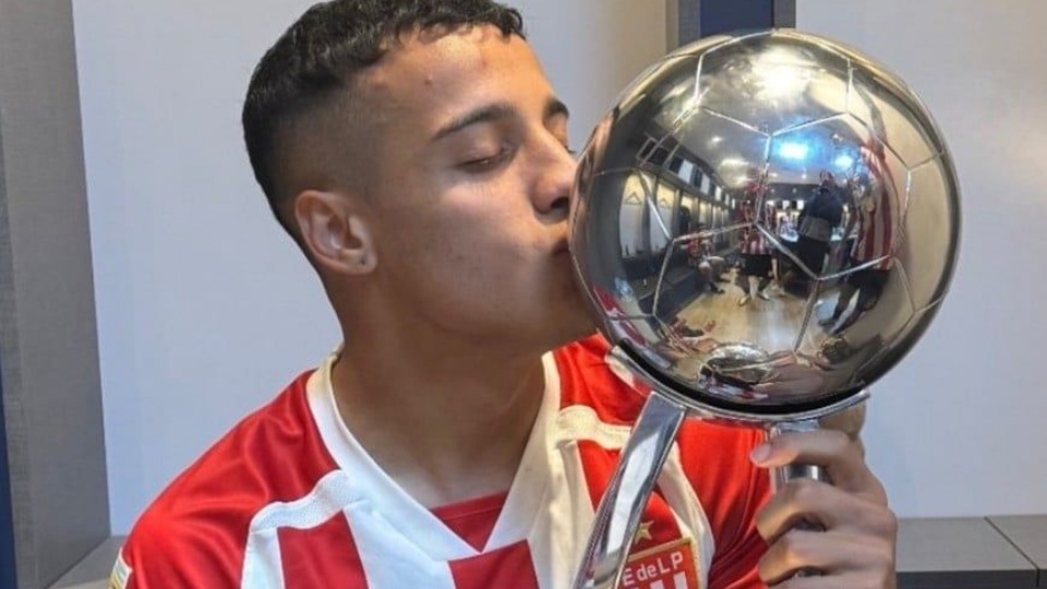 En la imagen se lo ve al futbolista de 23 años con una copa en la mano.