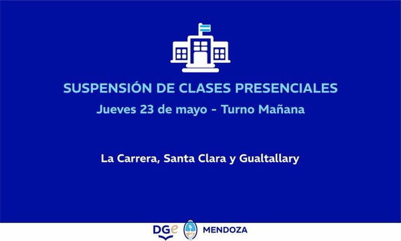 La Dirección General de Escuelas (DGE) informó que se determinó la suspensión de clases presenciales en el turno mañana en las escuelas de todos los niveles y modalidades.