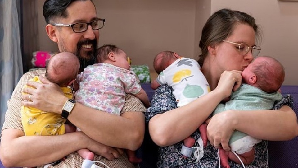 Raquel y Marco Vargas, una pareja de Phoenix, Arizona, dio la bienvenida a cuatrillizas idénticas concebidas naturalmente, un evento extraordinario que ocurre aproximadamente una vez cada 11 millones de nacimientos.