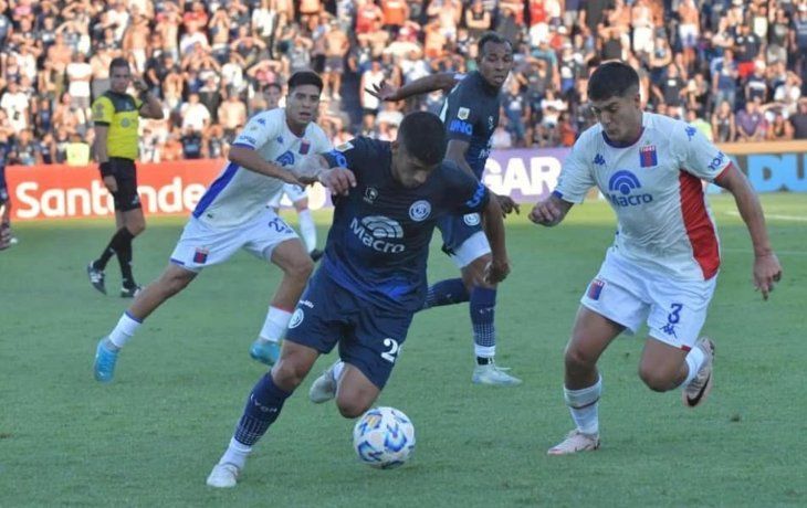La primera llegada del partido fue a los 17 minutos, para la visita. El delantero Matías Godoy recibió en el costado izquierdo del área rival y metió un remate a colocar, que buscaba el segundo poste pero no tuvo dirección y llegó suave a las manos del arquero Nahuel Losada.