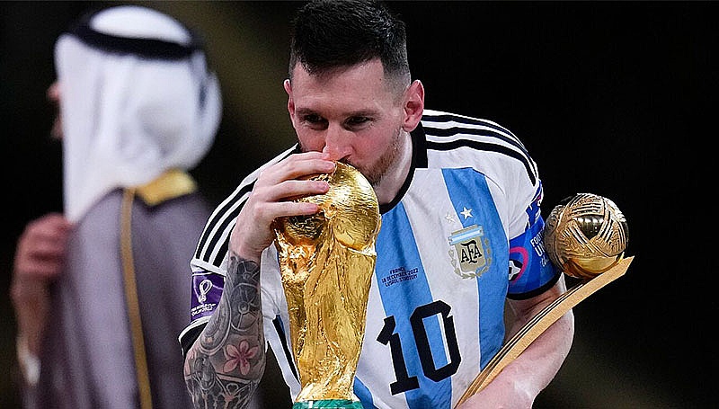El astro de Inter Miami compartió en sus redes sociales una imagen del momento en el que levantó la Copa del Mundo.