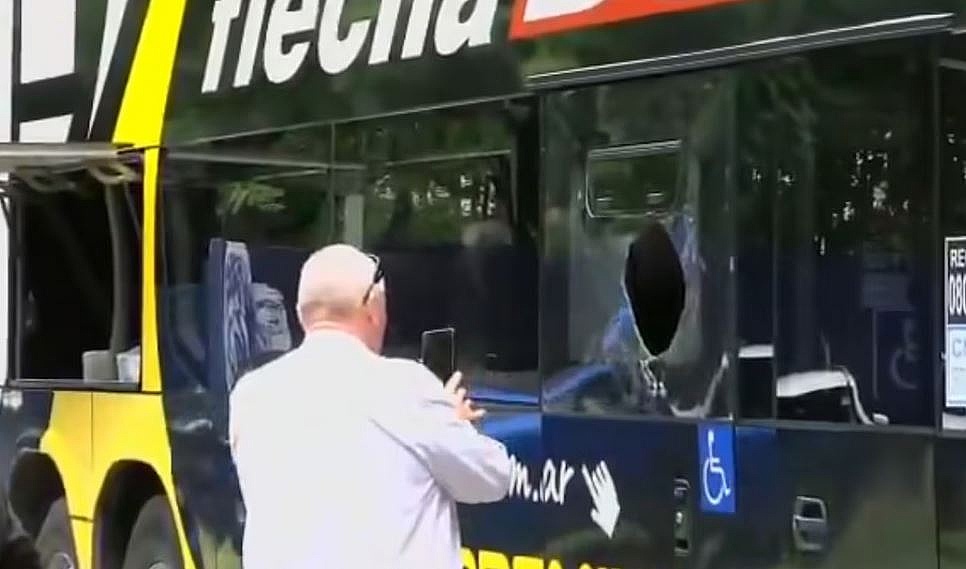El vehículo llegó al Bosque con un vidrio destrozado. El partido empezará a las 17.