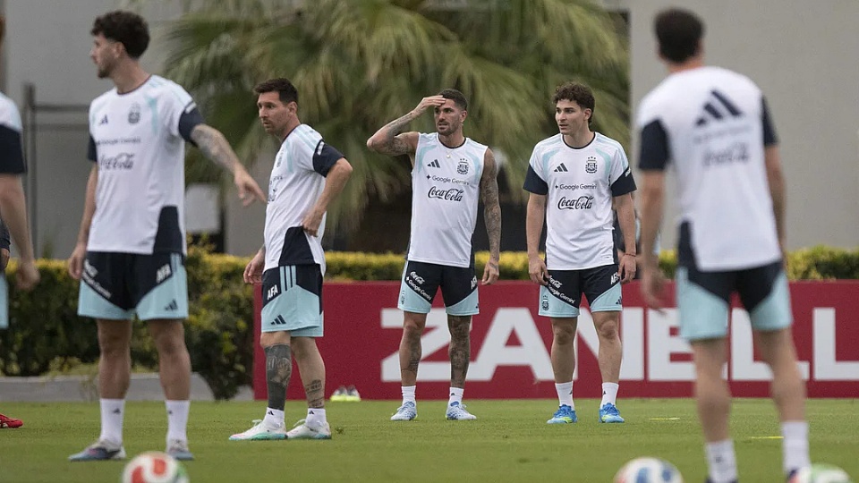 El entrenamiento incluyó minutos de fútbol para varios jugadores. La formación inicial fue: Rulli; Giay, Martínez Quarta, Otamendi, Tagliafico; Barco, Paredes, Exequiel Palacios; Prestianni, José López y Nico Paz. En la segunda mitad ingresaron: Perrone, Mastantuono, Simeone, Musso, Gabriel Rojas y Tomás Palacios.
