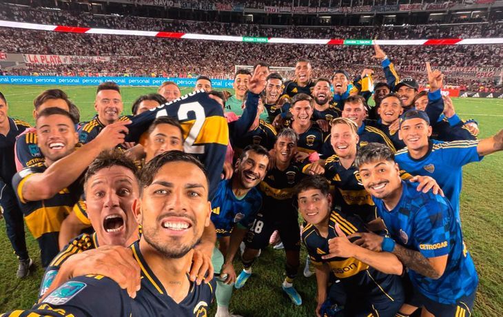 Con Leandro Paredes como protagonista, el plantel xeneize celebró la victoria ante River con una foto grupal en el campo de juego.
