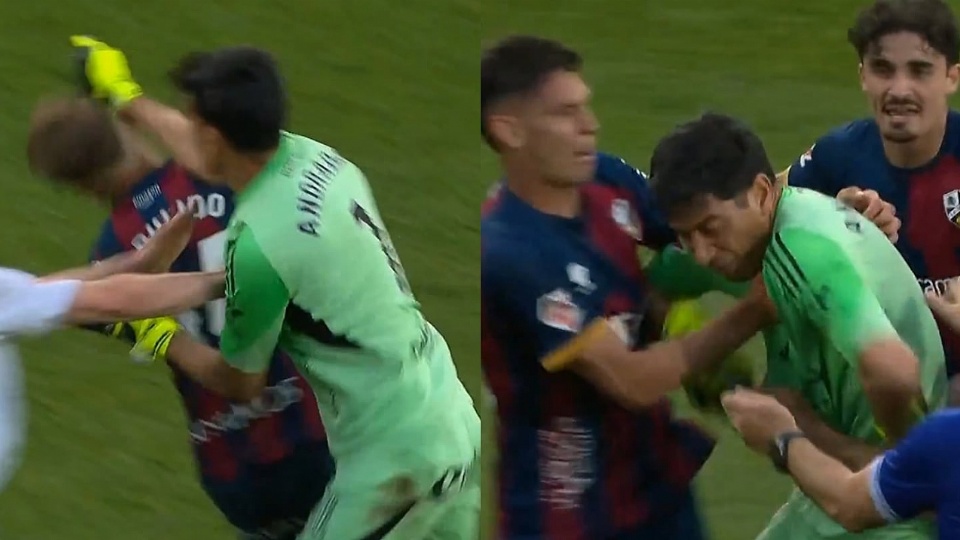 En la segunda división del fútbol español se vivió un momento de tensión entre los jugadores del Huesca y el Zaragoza. El gran protagonista del escándalo fue el exarquero de Boca Esteban Andrada, que fue expulsado y reaccionó con una brutal trompada a un rival.