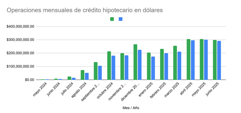Por otro lado, el flujo de créditos hipotecarios se estabilizó desde abril de 2025, con un volumen mensual cercano a los USD 300 millones. Esto sugiere que la recuperación del mercado encontró su "velocidad crucero", lo que podría indicar que el impulso inicial está perdiendo fuerza. A pesar de la demanda alta, los bancos podrían exigir plazos más largos para la aprobación de créditos o aplicar condiciones más estrictas.
