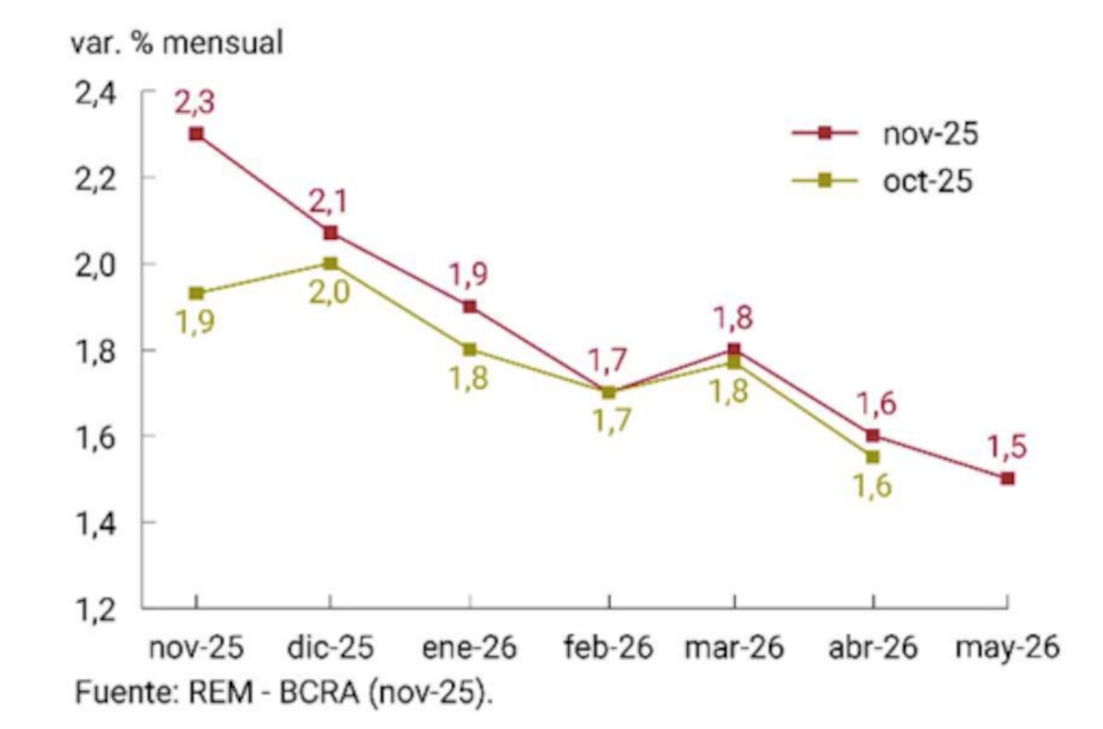 A partir del 1 de enero, el techo y el piso de la banda de flotación cambiaria evolucionarán cada mes al ritmo correspondiente al último dato de inflación mensual informado por INDEC. Dado el calendario del ente estadístico, en el primer mes del 2026 las bandas se ampliarán en un 1,6% dada la inflación de noviembre que se conoció el 11 de diciembre.