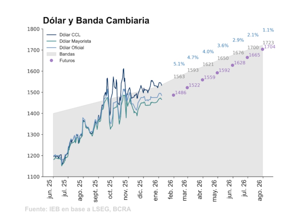 En 2026, el movimiento del dólar seguirá "encorsetado" por la presión de distintas fuerzas: las compras oficiales, el nivel de desinflación -que a su vez determina la evolución de las bandas cambiarias- y la defensa de un tipo de cambio real sustentable y competitivo.