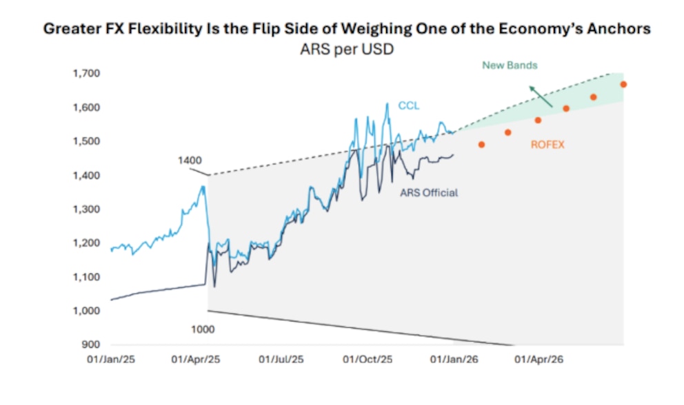 "Durante los últimos días, las autoridades comenzaron a implementar el nuevo marco monetario, centrado en la introducción de bandas cambiarias y un programa formal de acumulación de divisas. No obstante, los acontecimientos en torno al cambio de año sugieren que la estabilidad cambiaria y monetaria sigue siendo la prioridad central de las autoridades. En conjunto, la combinación de estas medidas sigue apuntando a una postura de política menos enfocada en el nivel del tipo de cambio y más orientada a contener la volatilidad cambiaria", evaluó el Equipo de Research de Adcap Grupo Financiero.