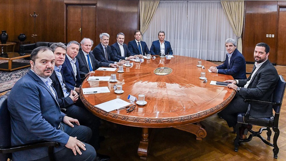 El ministro de Economía, Luis "Toto" Caputo, mantuvo una reunión con referentes del sector de supermercados, a la cual calificó de "excelente". Entre los principales puntos de diálogo, el ministro afirmó que desde el sector señalaron que "el principal problema que hoy los afecta son las altas tasas que aplican los municipios".
