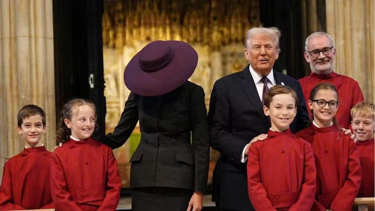 La primera dama llegó en helicóptero junto a Donald Trump al palacio de Windsor para reunirse con el rey Carlos III.