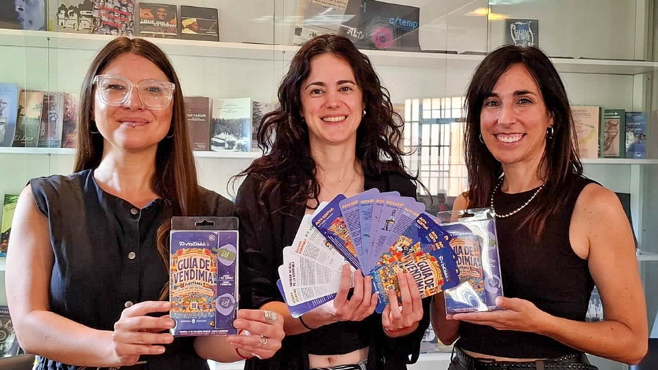 La agencia creativa y editorial Próspera desarrolla productos editoriales propios. Su primer proyecto fue una guía de campo con un enfoque más científico, pensada para diferenciar variedades de vid a través de sus hojas. Ahora, el equipo integrado por Elena Visciglio (diseñadora e ilustradora), Pamela Peterle (licenciada en Publicidad y magíster en Comunicación Institucional) y Silvina Barbanente (diseñadora gráfica e ilustradora), lanza una nueva propuesta cultural: la "Guía de Vendimia ilustrada".