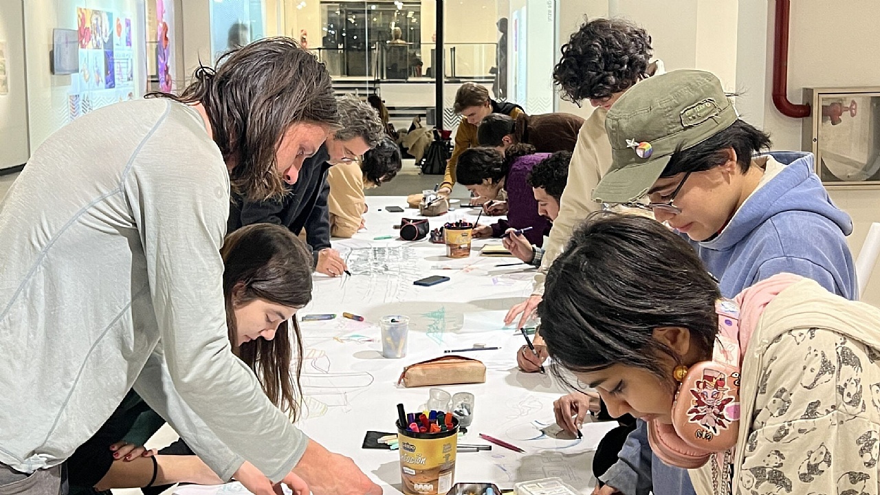 A partir de consignas y disparadores, los participantes podrán experimentar con el dibujo colectivo y compartir un espacio de creación junto a los demás asistentes. Así se genera un diálogo entre los dibujantes ocasionales y las obras expuestas en el museo.